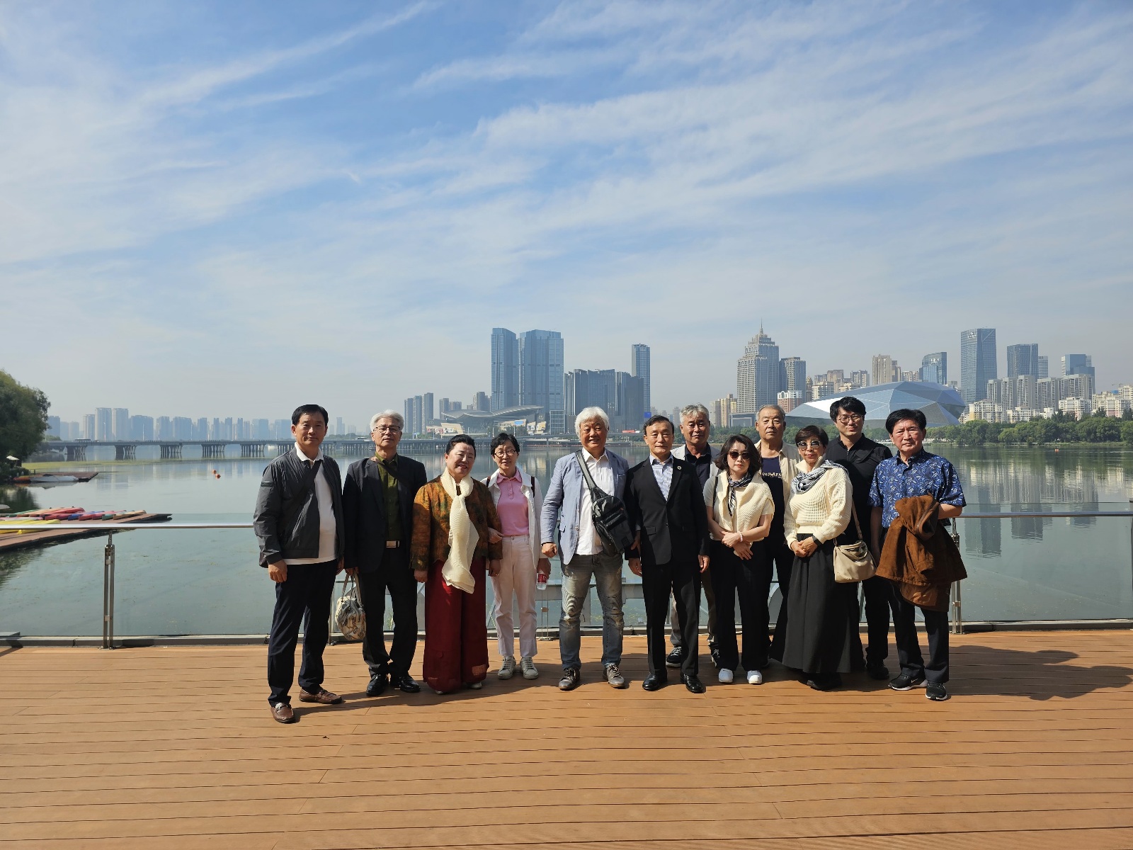 분실된 핸드폰을 찾고 즐거운 마음에 출국전 마지막 단체사진을 촬영한 한중미술협회원및 후원회원들